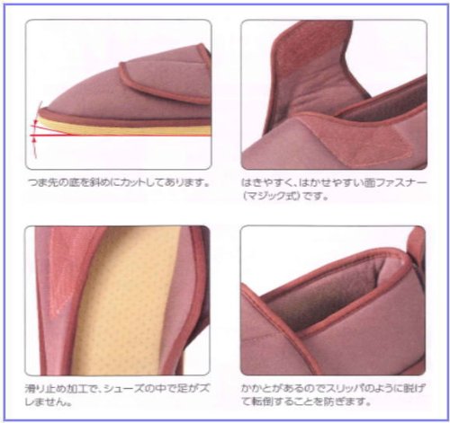 ●シューズ型なので、スリッパのように脱げて転倒する心配がありません。