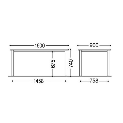 ■材質:天板=メラミン化粧板、芯材=パーティクルボード(枠組フラッシュペーパーハニカムコア)、エッジ=ソフトエッジ、脚部=31×31mm角スチールパイプ(メラミン焼付塗装、シルバーメタリック)、アジャスター付