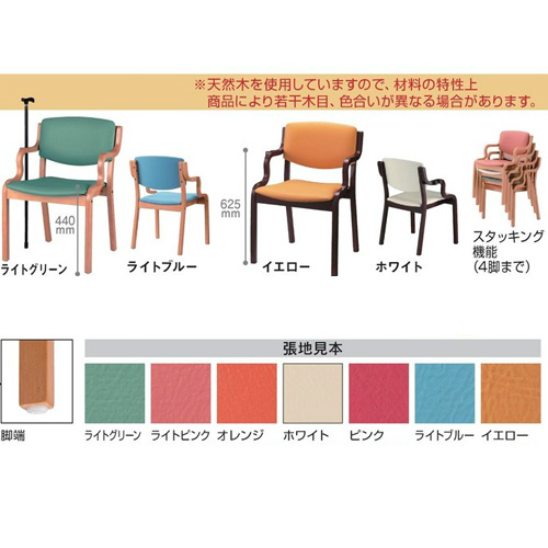 【送料無料】 木製チェア(杖立掛機能付) ライトグリーン フレームライト色 331-625 ライトグリーン W555×D510×H790mm(SH440mm) DLM