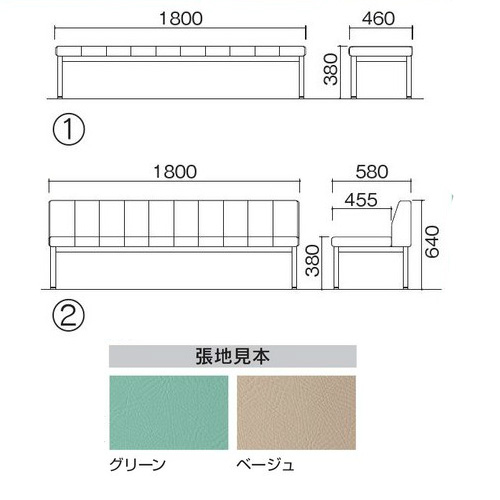 【送料無料】 ジョインテックス ロビーチェア 背なし 851-093 ベージュ W1800×D460×H380mm(SH380mm) JOINTEX ジョインテックス