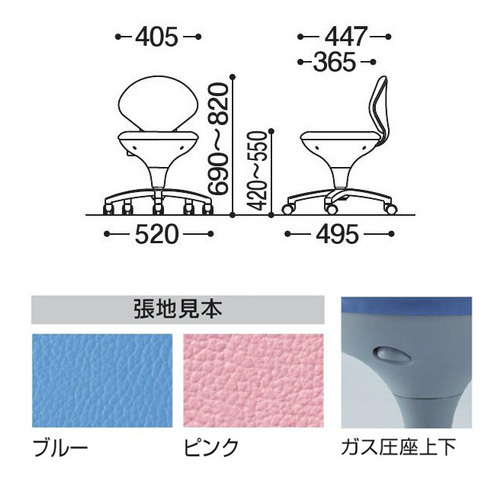 ■サイズ(外寸):W520×D495×H690~820mm(SH420~550mm)