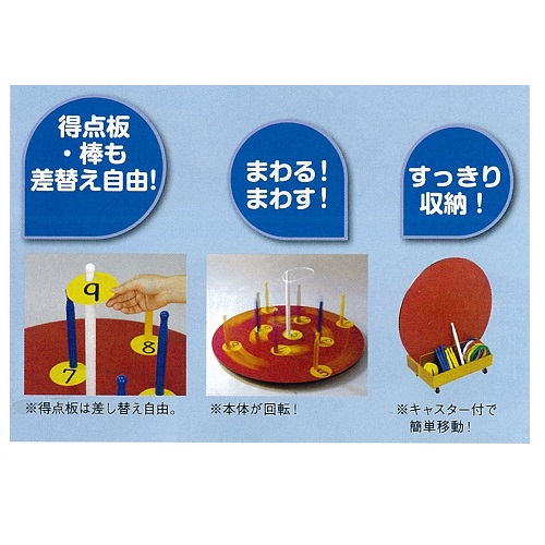 【送料無料】 回転式輪投げ 本体/直径880×高さ15mm、棒の長さ/大=400mm、中=250mm、小=210mm、得点板/直径110mm 65