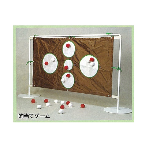 ●内容:パイプ3本、ベース2枚、玉入れ用かご2個、サッカーネット1枚、玉入れボール紅白各10個、サッカーボール1個、的当て用シート1枚