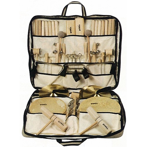 ●内容:(1)トーンブロック(2音)・ビーター付2組、(2)ウッドブロックビーター付(18cm)1組、(3)ウッドブロックビーター付(20cm)1組、(4)ギロー・スクレーパー付2個、(5)ジングルスティック(両面)2個、(6)ジングルスティック(6ベル)1個、(7)スティックベル(5ベル)2個、(8)タンバリン(直径18cm)1個、(9)タンバリン(直径20cm)1個、(10)シンバル(直径15cm)2組、(11)トライアングルビーター付(10cm)3組、(12)トライアングルビーター付(15cm)2組、(13)クラベス(200×18mm)(2本組)5組、(14)フェルトヘッドマレット2本