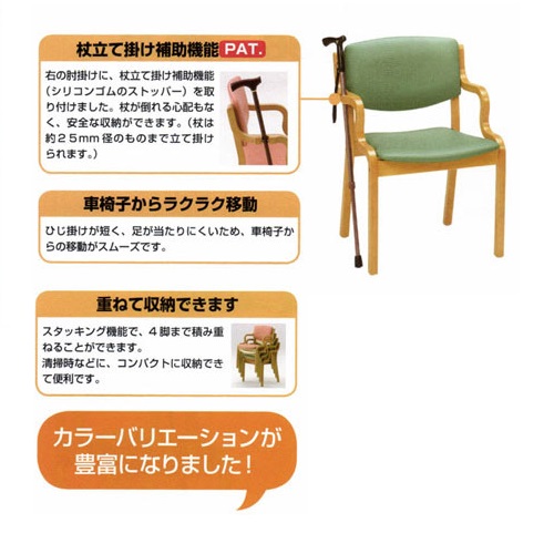 ●杖立て掛け機能付きの福祉用椅子が2脚で1セット。