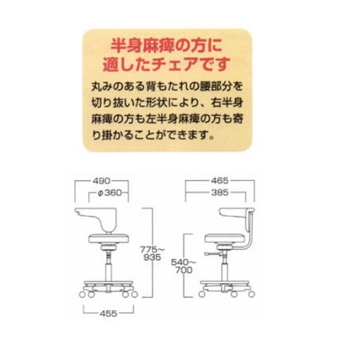 ●サイズ:幅490×奥行465×高さ775~935×座面高さ540~700mm