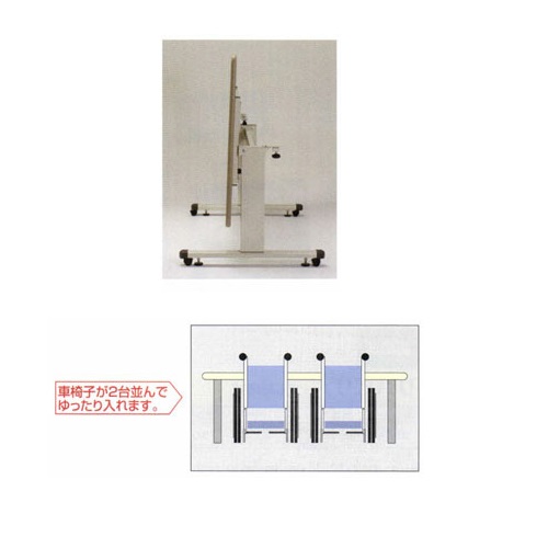 【商品説明】 ●折りたたみ式 ●材質:天板/ナラ集成材、厚さ25mm、エッジR50mm ●支柱ベース:鋼板、メラミン焼付塗装 ●昇降機構:ガススプリングロック式 ●脚部:キャスター4個付