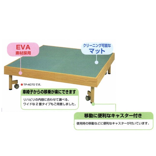 【商品説明】 ●一畳タイプ ●材質:EVA(木目調)・EVAマット(畳柄) ●脚部:スチール製キャスター(ストッパー付)・アジャスター各4個 ●許容荷重:一畳/200kg