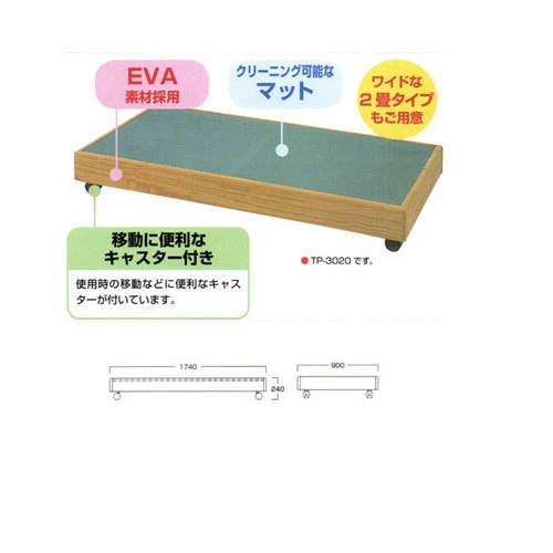 【商品説明】 ●一畳タイプ ●材質:EVA(木目調)・EVAマット(畳柄) ●脚部:キャスター(ストッパー付)4個 ●許容荷重:一畳/200kg