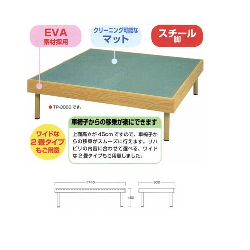 【商品説明】 ●一畳タイプ ●材質:EVA(木目調)・EVAマット(畳柄) ●脚部:スチール製アジャスター4個 ●許容荷重:一畳/200kg