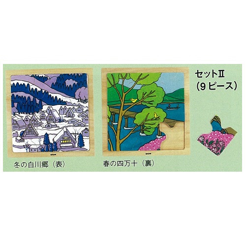木のジグソーパズル 冬の白川郷/春の四万十 幅295×奥行295×高さ10mm 450g AS610