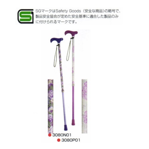 華やかフィットステッキ やわらかグリップ 伸縮花柄 パープル 長さ67.5~90cm 270g 3080N01