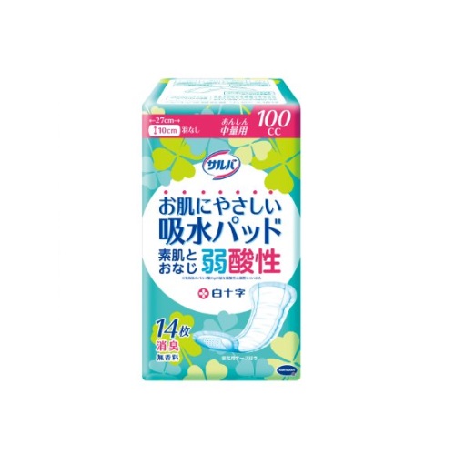 ケース販売24個セット サルバ お肌にやさしい吸水パッド あんしん中量用(100cc) 10×27cm 14枚入 31725 白十字