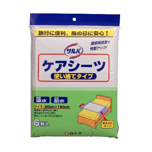 【送料無料】 ケース販売10個セット サルバ ケアシーツ 使い捨てタイプ ブルー 80×160cm 6枚入 31209 白十字