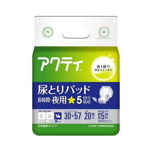 アクティ 尿取りパッド長時間夜用 20枚尿取りパッド長時間夜用 20枚 クレシア