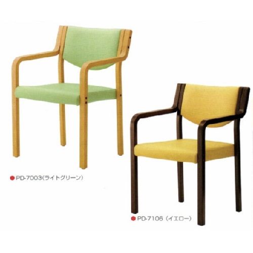 【送料無料】 福祉用椅子 PDタイプ イエロー(フレーム色/ダークブラウン) 幅550×奥行560×高さ770(座面高さ435、肘高610)mm 8.0kg PD-7106
