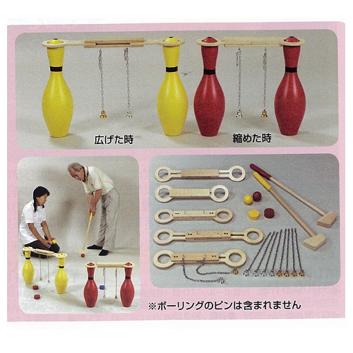 【送料無料】 ボーリングゲートあそび ボーリングゲームオプション ゲート幅/430~540×奥行100×厚25mm、スティック長さ/6500mm、ゲートボール用球/直径50mm、パック/直径55mm W28000