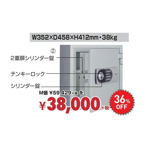 【送料無料】 ダブルドアセーフ 38kg 380-759 ライトグレー W352×D458×H412mm セントリー