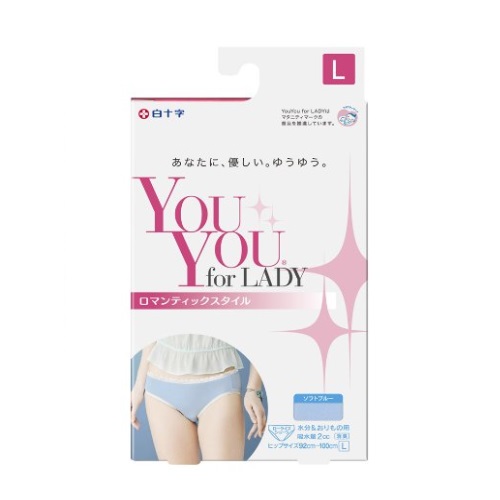 【送料無料】 ケース販売24枚セット YouYou for LADY ロマンティックスタイル ソフトブルー L(ヒップサイズ:92~100cm) 吸水量2cc 41701 白十字