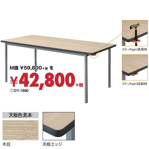 【送料無料】 ステッキjam付テーブル 1800×900 829-401 ナチュラルオーク W1800×D900×H740mm DLM