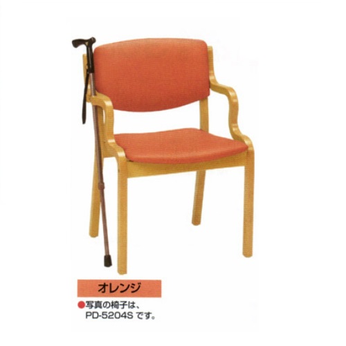 【送料無料】 福祉用椅子 PDタイプ オレンジ(フレーム色/ナチュラル) 幅530×奥行510×座面高さ440mm 7.1kg PD-5204S
