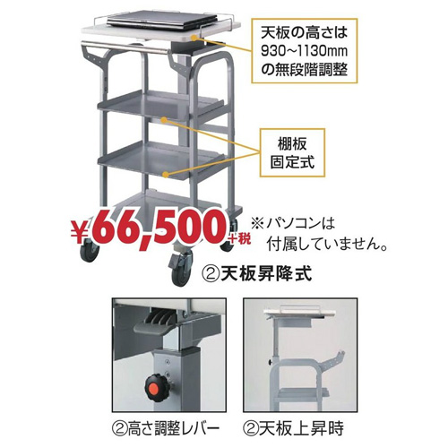 【送料無料】 電子カルテカート 天板昇降式 829-406 ホワイト W510×D530×H930~1130mm エヌケイ