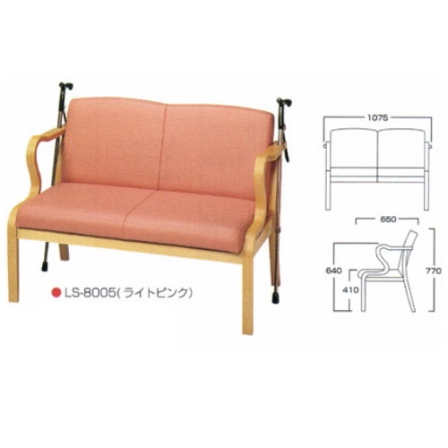 【送料無料】 2連福祉用椅子 LS8000タイプ ピンク 21.9kg LS-8101