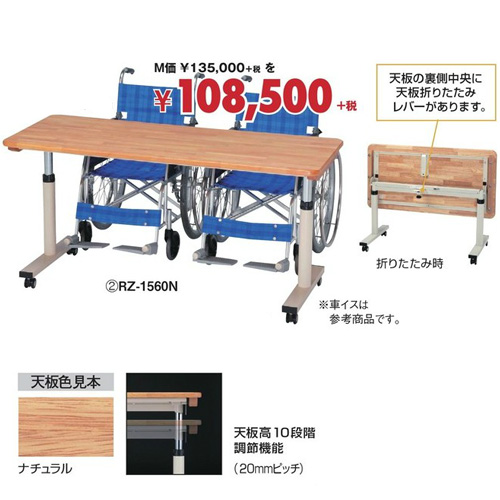 【送料無料】 折りたたみ式昇降テーブル RZタイプ 1200×600 380-634 色なし W1200×D600mm、H595~795mm DLM