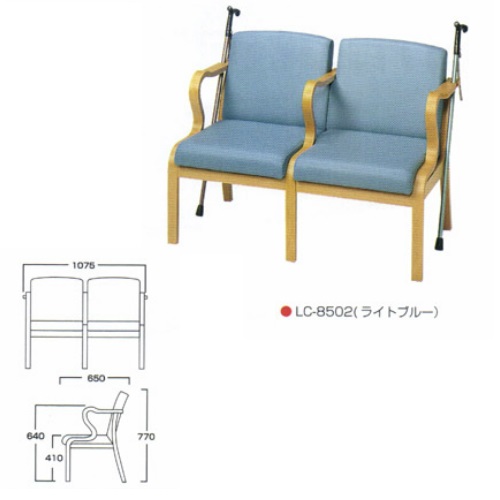 【送料無料】 2連福祉用椅子 LC8500タイプ ライトブルー 23.9kg LC-8502