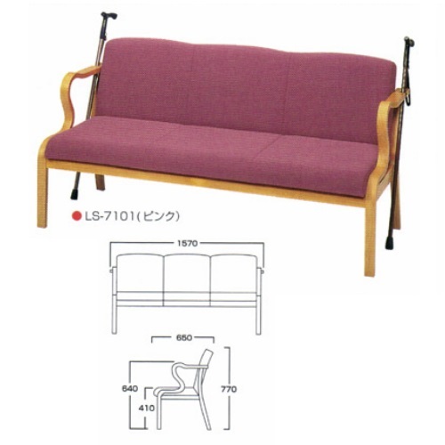 【送料無料】 3連福祉用椅子 LS7000タイプ ピンク 30.7kg LS-7101