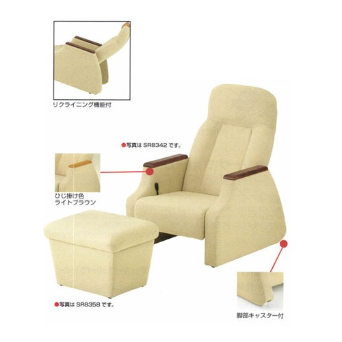 【送料無料】 リクライニングチェア SRタイプ 幅700×奥行880×高さ970(座面高さ340)mm SR-8342