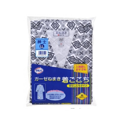 【送料無料】 ケース販売40着セット サルバ ガーゼねまき着ごこち 男性用 LL/身長約170~180cm位、着丈約140cm、裄丈約68cm、裾廻り約147cm 1着入 43120 白十字