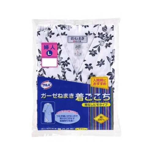 【送料無料】 ケース販売40着セット サルバ ガーゼねまき着ごこち 女性用 L/身長約155~165cm位、着丈約125cm、裄丈約60cm、裾廻り約147cm 1着入 43122 白十字