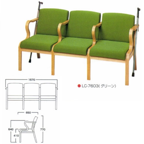 【送料無料】 3連福祉用椅子 LC7500タイプ グリーン 32.7kg LC-7603