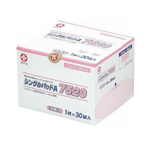 医療機器 シングルパッドA パッド部7.5×20cm、防水部11.0×22.5cm、1箱(30枚入) 19056 白十字