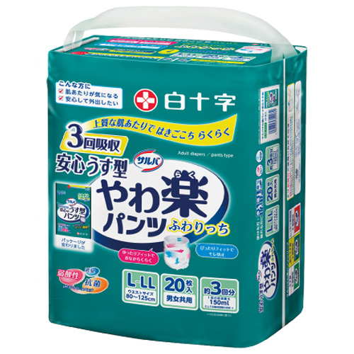 サルバ Dパンツ やわらかスリム うす型スーパー L-LL(ヒップサイズ:80~125cm) 20枚入 35498 白十字
