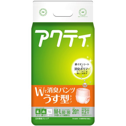 アクティ Wで消臭パンツうす型 (M-L 20枚)Wで消臭パンツうす型 (M-L 20枚) クレシア