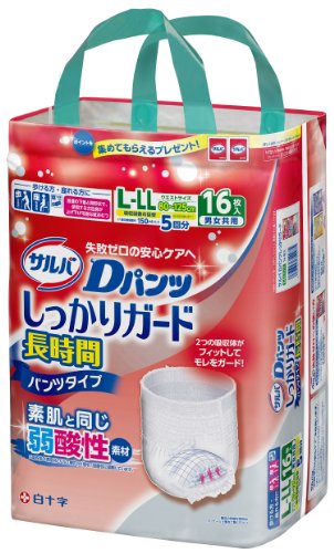 サルバ Dパンツ しっかりガード 長時間 男女共用 L-LL ウエストサイズ80cm-125cm 16枚入 白十字