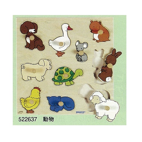 つまみ付きパズル 動物 幅295×奥行295×厚さ30mm 300g 522637