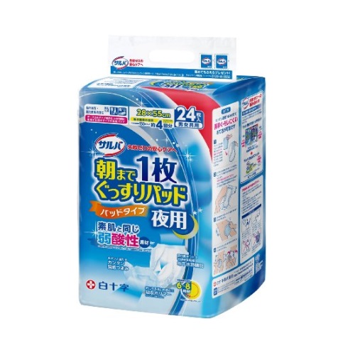ケース販売3個セット サルバ 朝まで1枚ぐっすりパッド 夜用 28×55cm 24枚入 33183 白十字